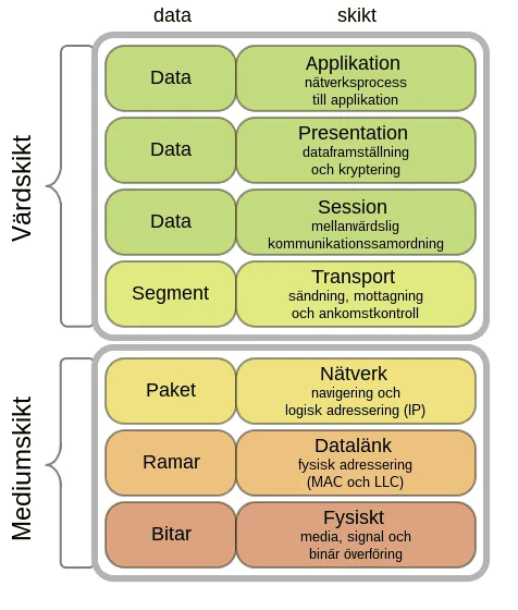 4. Transportsskiktet: felkontroll när data skickas mellan värdar.